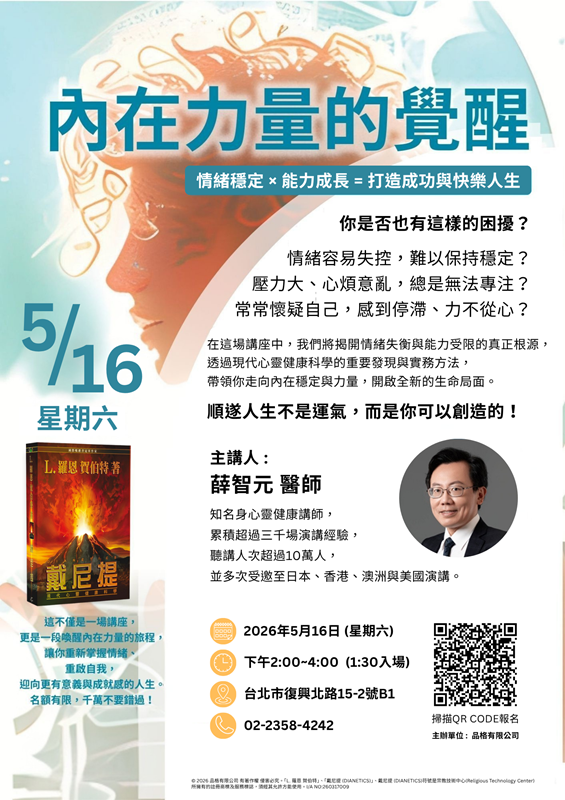 只要有買Dianetics書或如何使用Dianetics DVD即可報名參加研討會,透過講師的生動解說和實地操作。幫助你快速了解心靈的祕密和自我改善的有效工具。