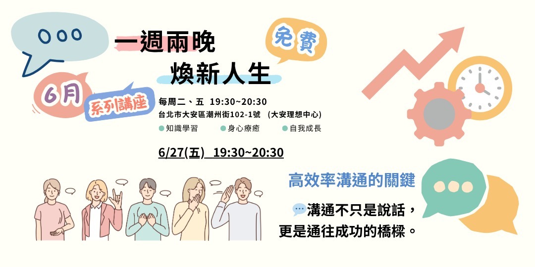 免費系列講座 一週兩晚,煥新人生 知識學習身心療癒自我成長 台北市大安區潮州街102-1號 六月最終場 6/2……(繼續閱讀)
